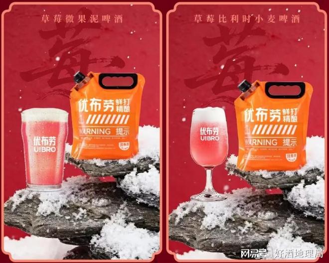 近日,优布劳精酿啤酒推出草莓微果泥啤酒、草莓比利时小麦啤酒两款新品上市。据悉,两款新品均为鲜打专供,可提供500ML、1.5L、2.5L、3L酒炮多种规格,果泥款口感绵密宛若奶昔,小麦款果香四溢气泡满满。(优布劳精酿啤酒)